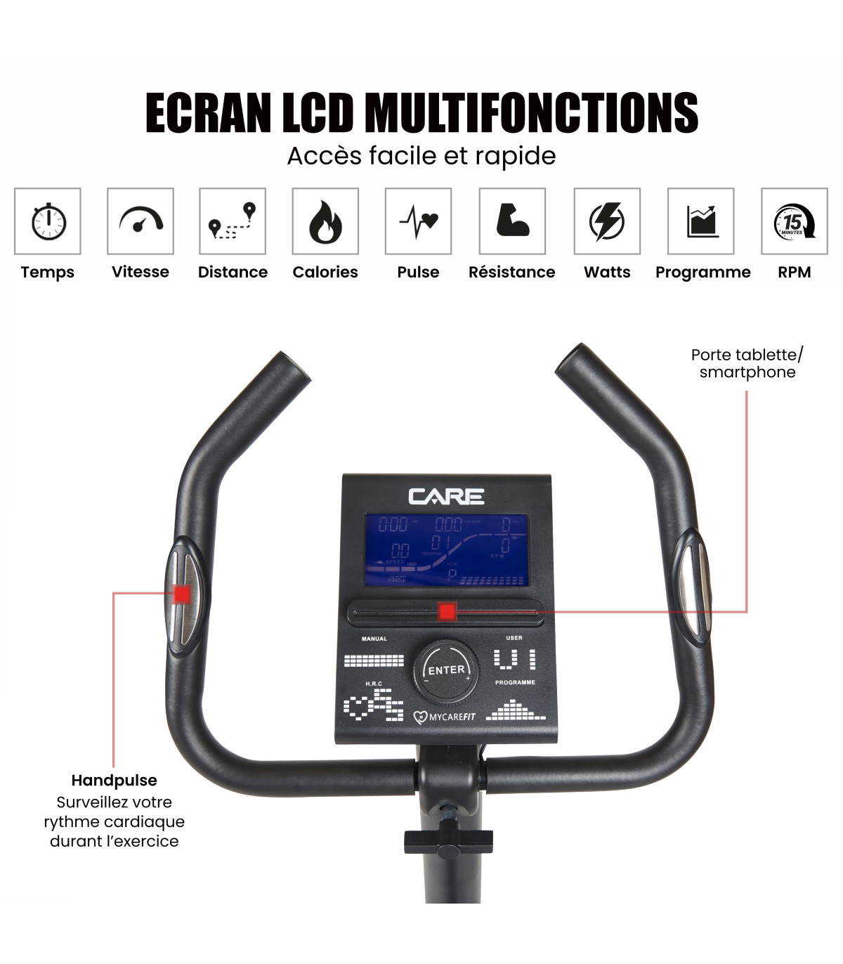 Le vélo d'appartement CV-385 possède les fonctions suivantes: