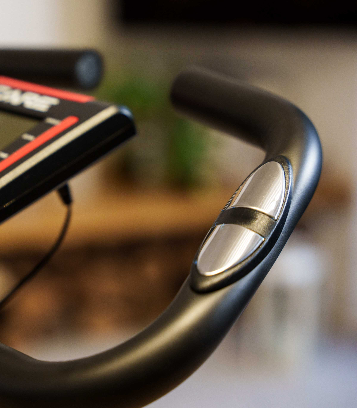 Roue d'inertie : La roue d'inertie de 4Kg offre à ce vélo un pédalage fluide et sans à-coups, et s'accompagne de pédales lestées et sanglées pour un bon maintien des pieds.