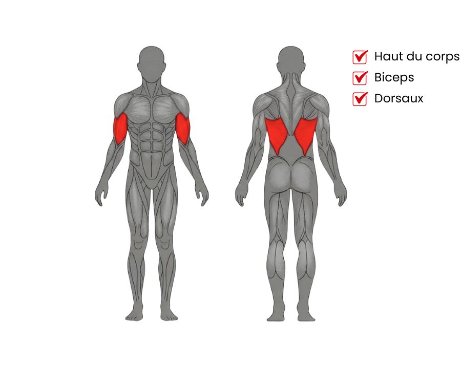 Le travail sur cette presse de tirage vertical cible spécifiquement l'hypertrophie du grand dorsal et le renforcement des avant-bras. La cinématique à deux bras indépendants favorise un recrutement musculaire équilibré éliminant les compensations bilatérales. L'exercice en position assise avec boudins de blocage des cuisses permet de se concentrer sur la phase excentrique du mouvement sans décoller du siège. La charge guidée sécurise l'entraînement jusqu'à l'échec musculaire sans risque de basculement de la charge. Les instructions claires situées sur le carter facilitent la compréhension immédiate de l'exercice pour une mise en action rapide. Que ce soit pour gagner en largeur de dos ou en épaisseur au niveau des lombaires supérieures cet équipement répond aux standards de performance.