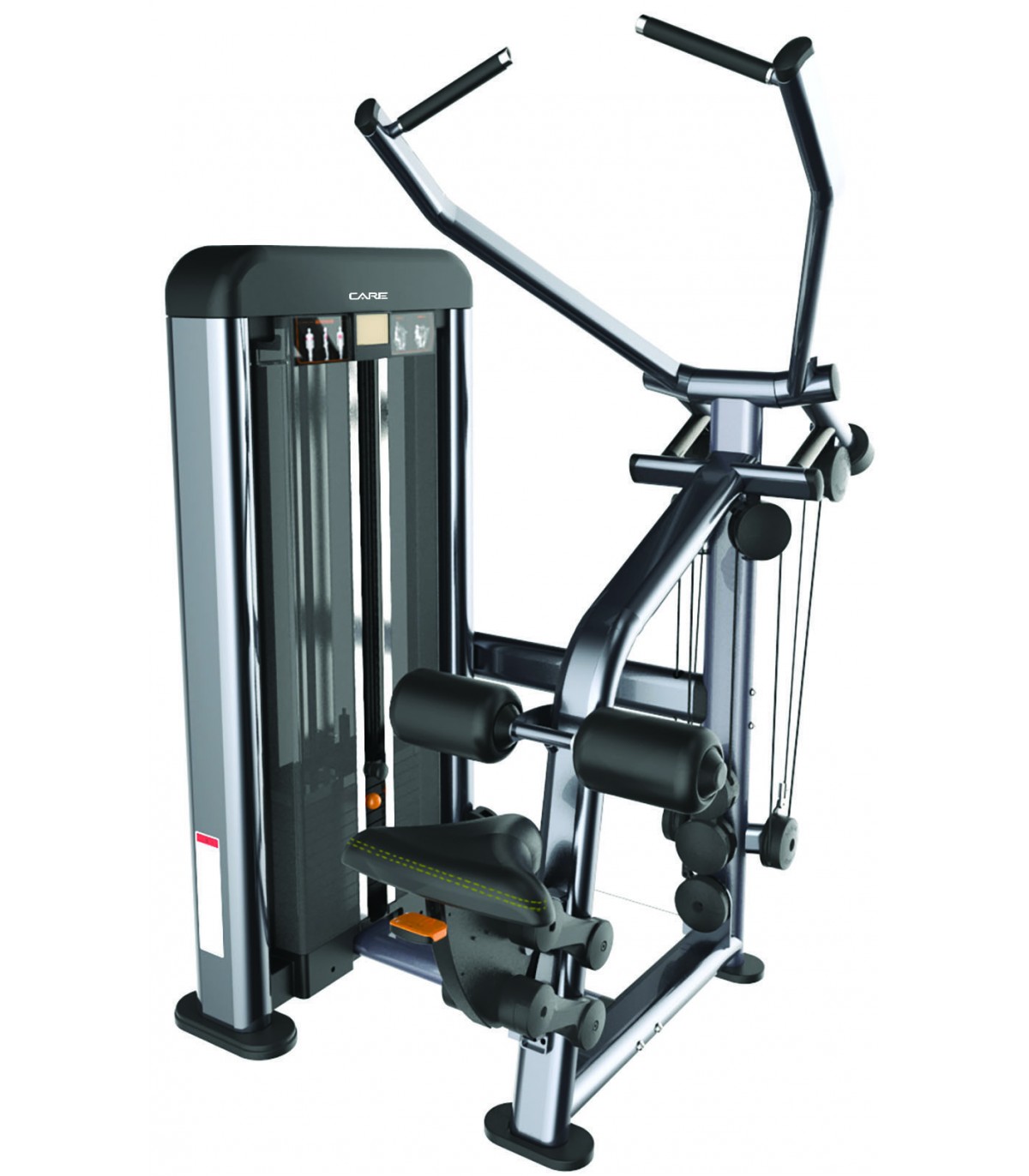 Cette presse de musculation permet de travailler les dorsaux avec un mouvement de tirage vertical, en charge guidée, avec deux bras mobiles. La charge max de cet appareil est de 102 Kg.