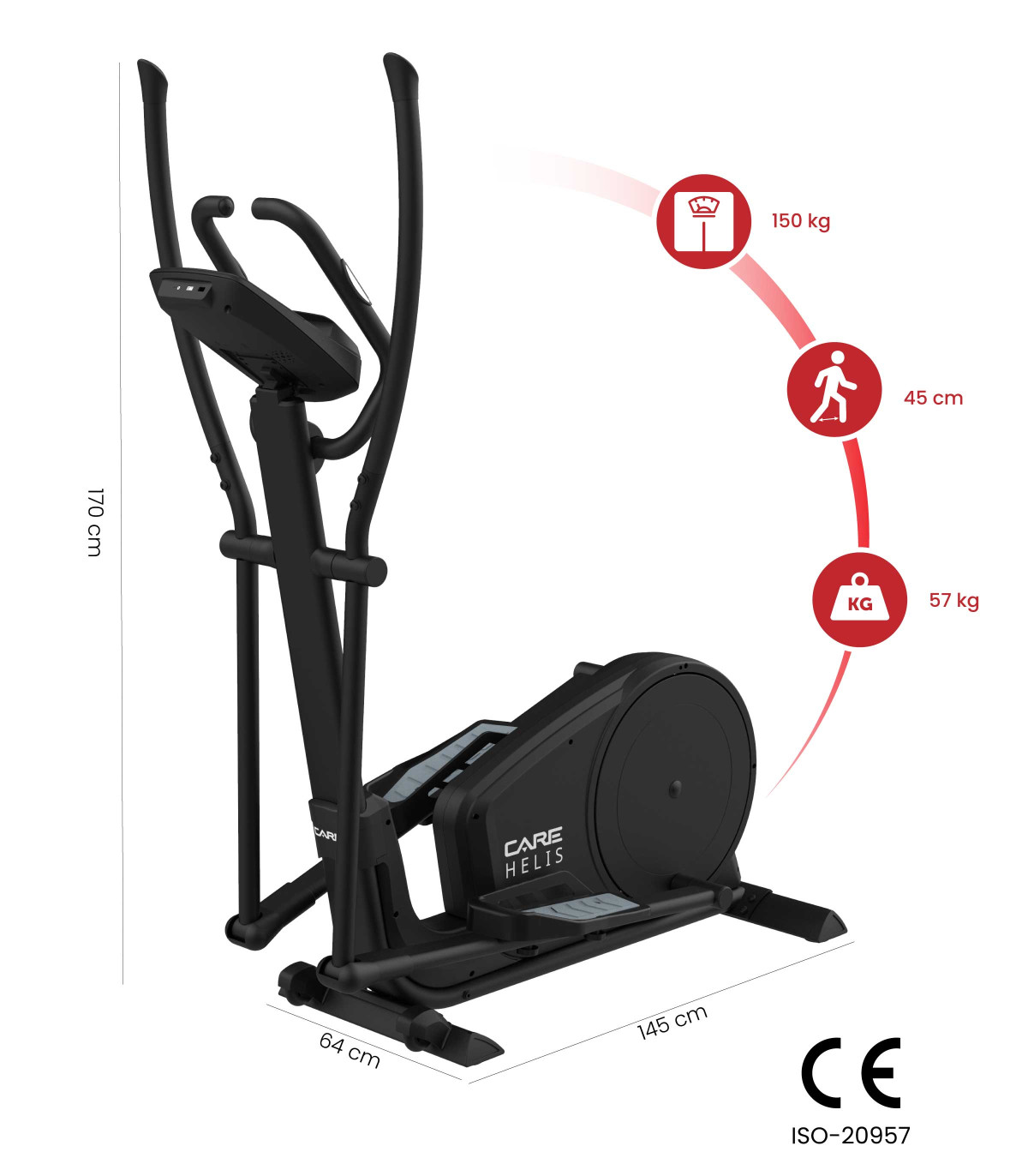 Le vélo elliptique Helis est doté d'une roue d'inertie de 14Kg pour une amplitude de mouvement optimale, de pédales antidérapantes pour une meilleure stabilité, et un système de résistance magnétique fluide et silencieux qui offre un grand confort de pédalage et améliore la qualité de votre entrainement.