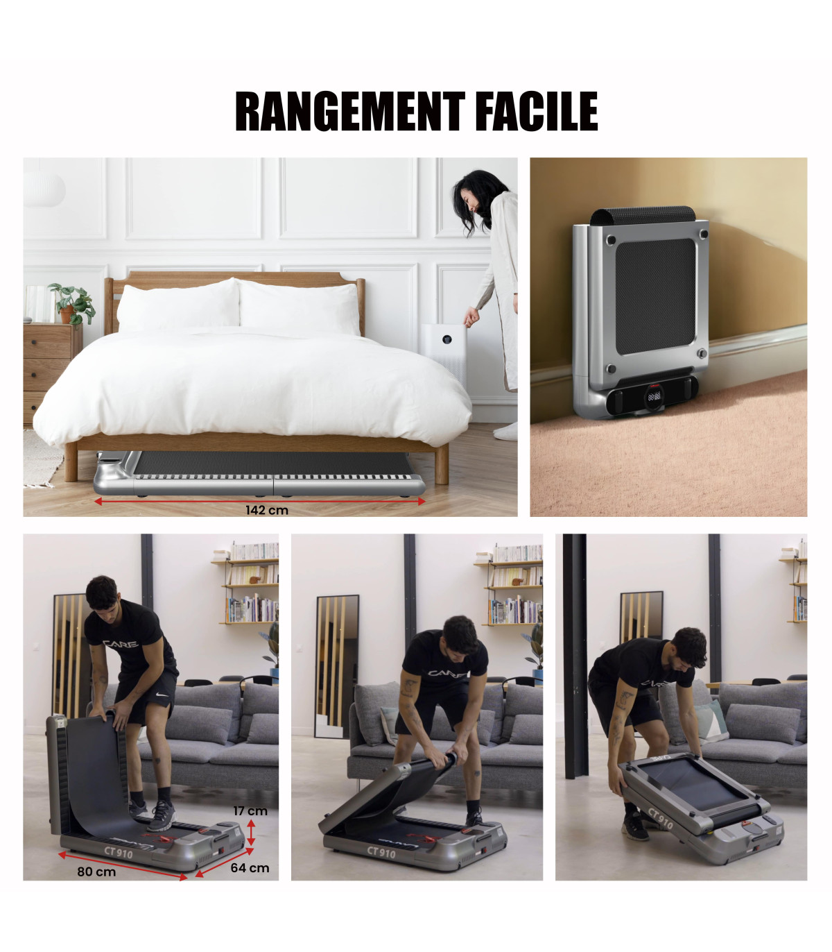 Le CT-910 est un tapis de course à la fois confortable et ergonomique, pour vous offrir une pratique adéquate et une facilité de rangement: