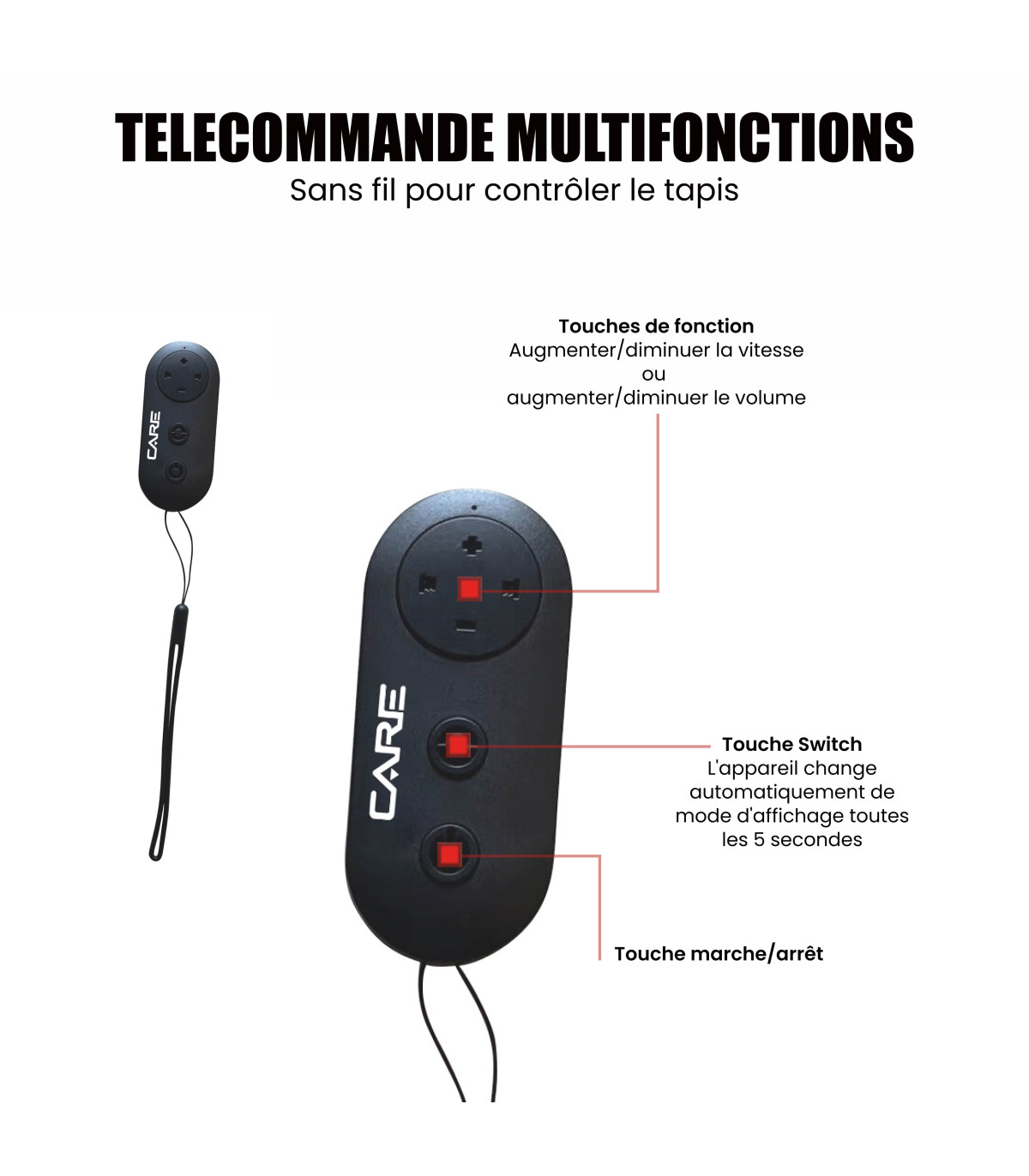 - Télécommande sans fil pour contrôler le tapis