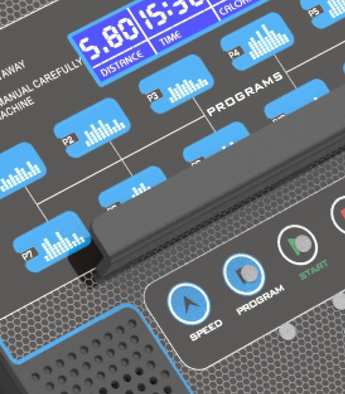 Le tapis est doté d'une console avec 5 fonctions intégrées, des programmes accessibles en quelques secondes.