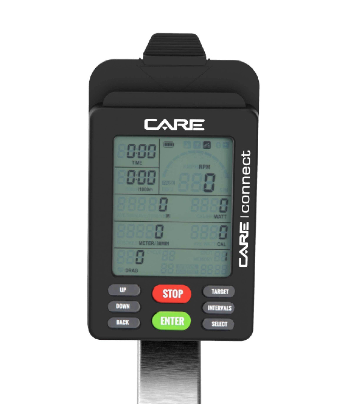 L’écran LCD intègre toutes les données nécessaires à votre suivi : cadence (RPM), puissance (Watt), distance, calories, fréquence cardiaque (nécessite une ceinture thoracique), temps et moyennes. Vous conservez la maîtrise de votre progression séance après séance grâce au mode mémoire.
