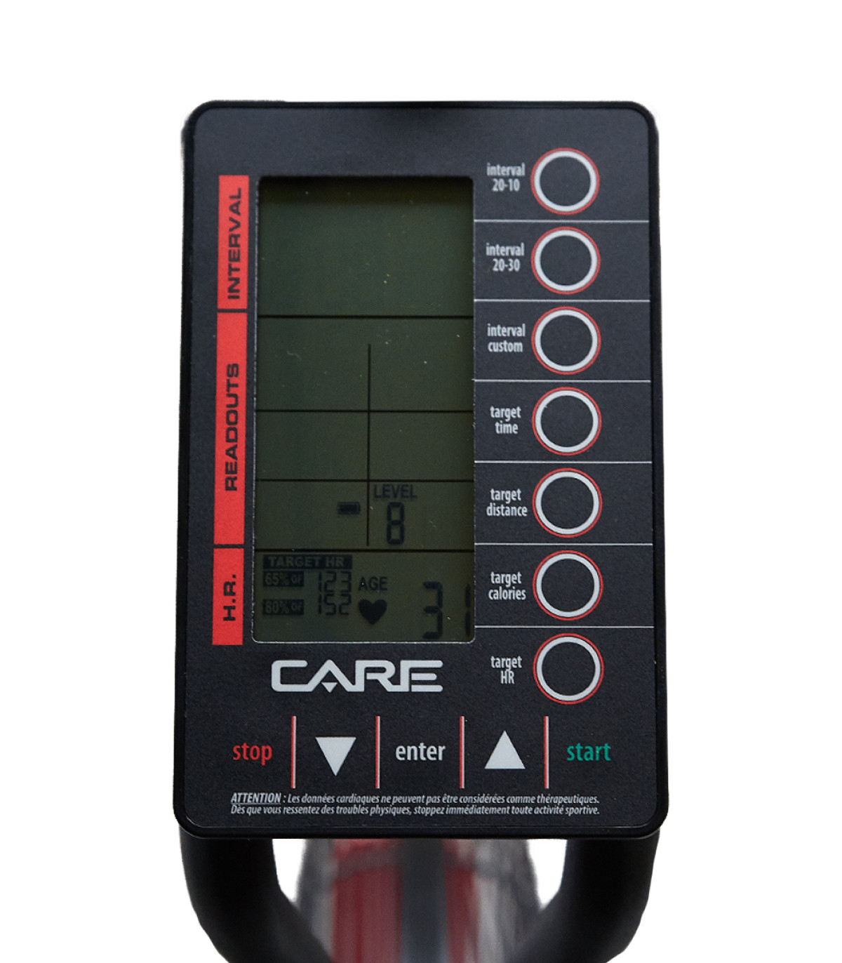 - 8 programmes dont 20/10, 20/30, intervalles personnalisés, réglages de cible et contrôle de la fréquence cardiaque.